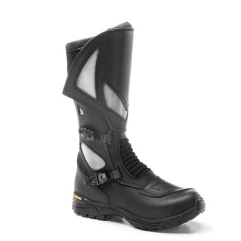 Per motociclisti di questo rango, ieri in vendita cera una scelta obbligata tra due possibilità: A) stivali turistici, impermeabili pratici e leggeri, ma poco protettivi nel fuoristrada... B) pesanti stivali enduro, robusti con cui era però impensabile fare un viaggio “sotto la pioggia” o tanto meno camminare per qualche chilometro in un centro storico…”